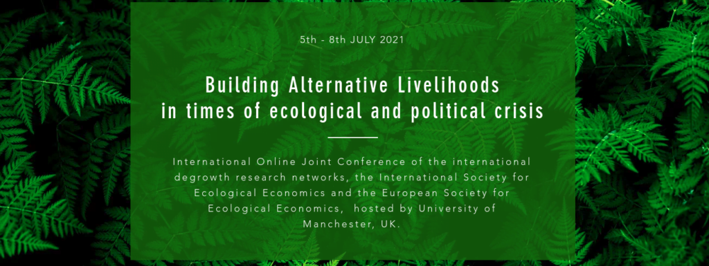 Enough!’s Svenja Meyerricks and Ewan Mackenzie (University of Newcastle) are going to co-host a session at the International Joint Online Conference of the international degrowth research networks, the International Society for Ecological Economics and the European Society for Ecological Economics, hosted by University of Manchester, UK.