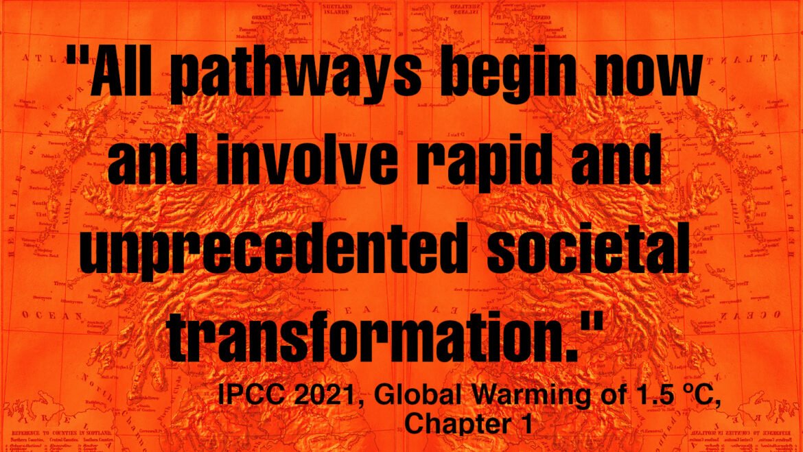 The recent IPPC report signals the latest three-alarm warning for humanity and the biosphere. It’s a red alert for the ‘red zone’- those areas of our planet responsible for the most emissions, which are also now squarely in the floodplain- including Scotland.