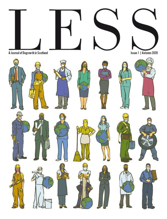 LESS is a journal of degrowth, radical sufficiency and decolonisation in Scotland. Each issue ideas re-imagining our economy, mixing theory and grounded practice, examples of grassroots organisation and visionary ideas for a viable future. We publish in print and distribute across the UK, articles are also published online here.Issue 2 examines degrowth and climate breakdown in a post-Brexit, mid-pandemic, pre-independent Scotland.As the institutions and...